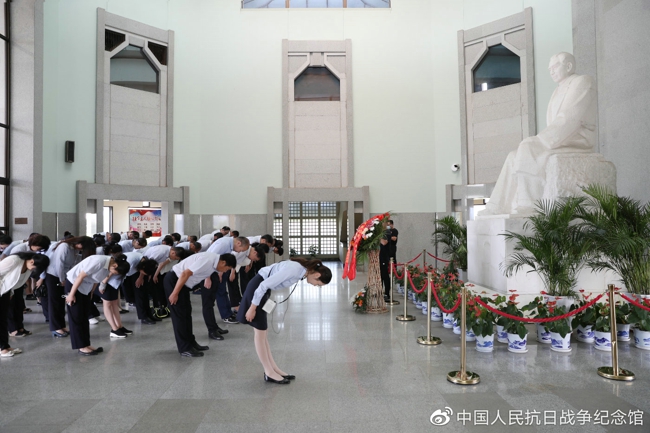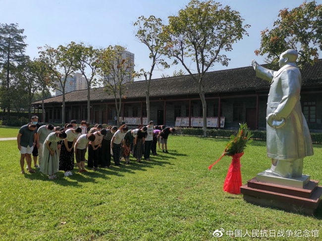 周恩來(lái)紀(jì)念地管理局(周恩來(lái)紀(jì)念館)組織60余名干部職工在周恩來(lái)總理漢白玉塑像前行鞠躬禮,以緬懷周恩來(lái)等老一輩革命家為抗日戰(zhàn)爭(zhēng)勝利所做出的豐功偉績(jī)。儀式結(jié)束后,全體人員共同參觀了專題展覽《周恩來(lái)與南京長(zhǎng)江大橋》。