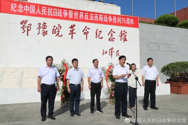 鄂豫皖革命紀(jì)念館工作人員在紀(jì)念館廣場(chǎng)莊嚴(yán)舉行升國(guó)旗、唱國(guó)歌儀式,并向抗戰(zhàn)先烈敬獻(xiàn)花籃。同時(shí),還依托館藏革命文物,講述紅色故事,重溫艱辛光輝的抗戰(zhàn)史。