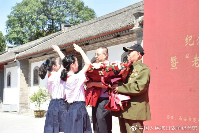 八路軍西安辦事處紀(jì)念館邀請(qǐng)抗戰(zhàn)老兵及老兵后代參加紀(jì)念儀式。育英小學(xué)周恩來(lái)班的少年先鋒隊(duì)員為老兵獻(xiàn)花,表達(dá)了對(duì)抗戰(zhàn)老兵最崇高的敬意,感謝他們?yōu)閲?guó)家、為民族解放、為抗戰(zhàn)勝利所作出的巨大貢獻(xiàn)。